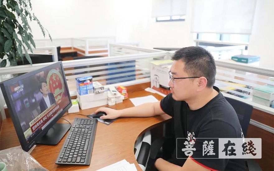 菩萨在线浙江讯 适值两会期间,为提升全院师生员工政治素养,及时掌握国家新时期要闻政策,增强家国情怀与责任意识,浙江佛学院于5月28日下午15时,组织全体在校人员观看十三届全国人大三次会议闭幕会特别报道。