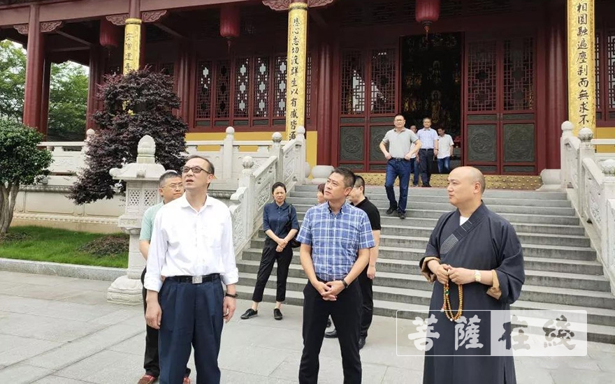 法弘大和尚带领马继宁一行参访了寺院的天王殿、大雄宝殿以及观音阁三个主殿。马继宁对寺院状况进行了仔细查看,并寺院建设、发展作了充分的肯定。