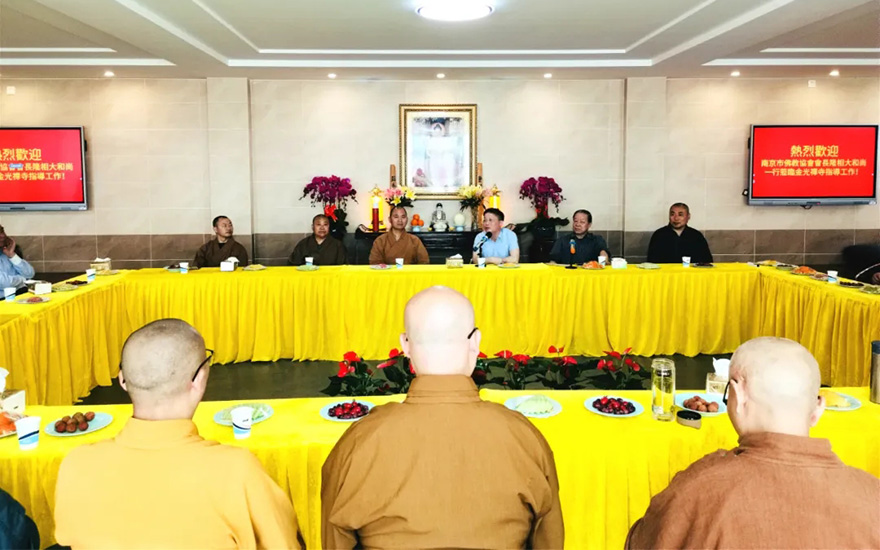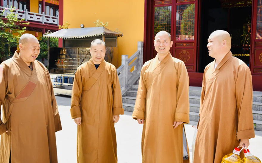 六合区委统战部常务副部长马晓飞,区委统战部副部长、区民宗局局长方绪贵,副局长徐松根,科长张汉江,科员刘恒友及六合区佛教协会领导热情接待并陪同。隆相会长一行先后走访慰问了金光禅寺、大士禅林、弥陀寺、招贤寺、广佛寺,看望寺院僧众,送上慰问金和生活物资。