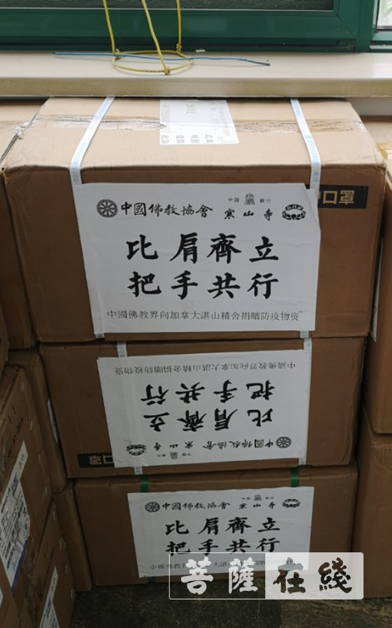 菩萨在线海外讯 加拿大佛教会湛山精舎、中国佛教协会、江苏省佛教协会、苏州寒山寺、苏州弘化社共同捐赠抗疫物资50余万元给加拿大多伦多抗击疫情。