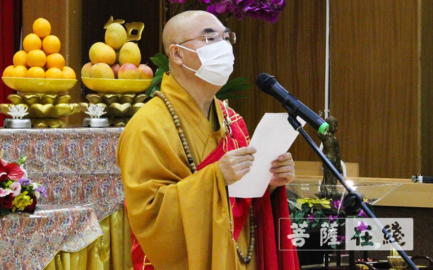 香港佛教联合会会长宽运法师在浴佛仪式上致辞,希望大众明白“无常”的道理,以正知、正见面对情绪。
