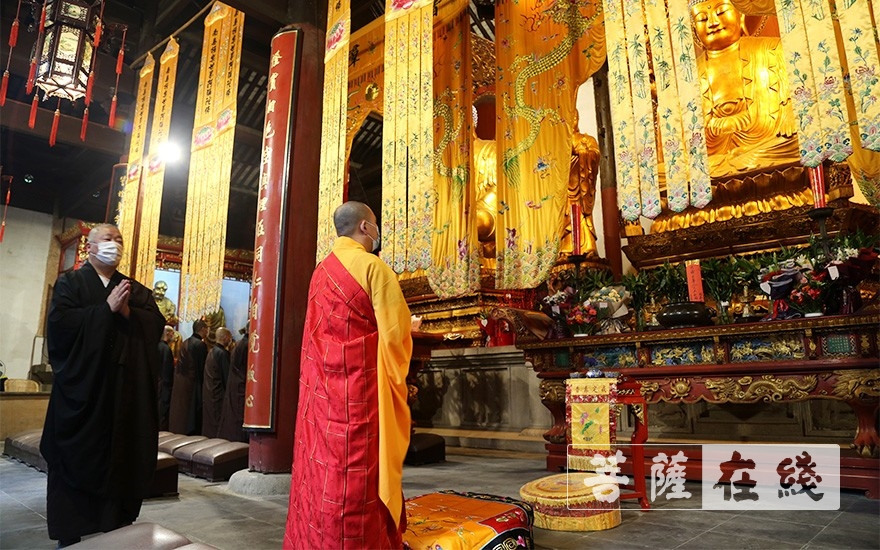菩萨在线江苏讯 6月8日(庚子闰四月十七),常熟兴福禅寺有序恢复开放第一天。清晨5时30分,兴福禅寺举行诵经祈福佛事。全寺僧众按疫情防控要求排班,为大众祈福纳祥。
