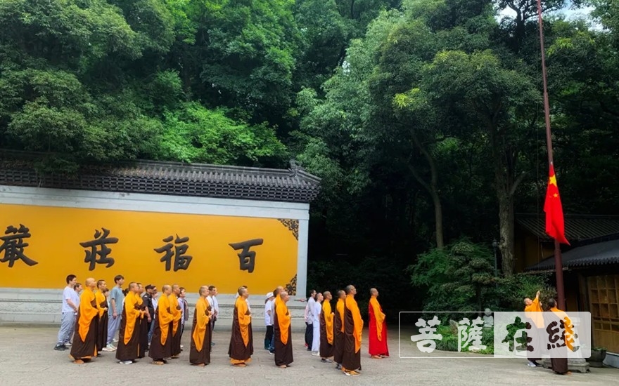 寺院开放首日,杭州永福寺举行升国旗仪式