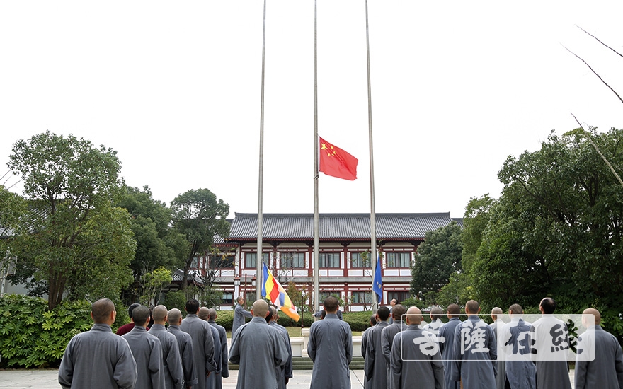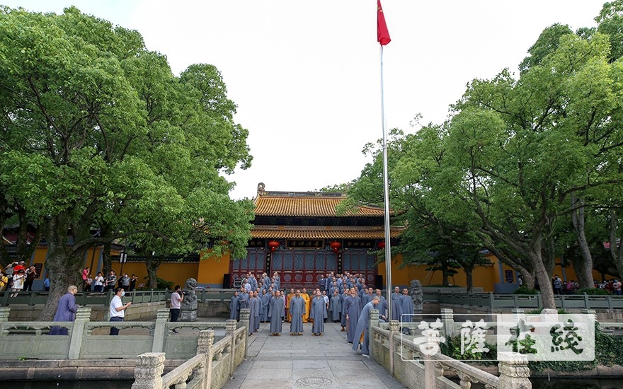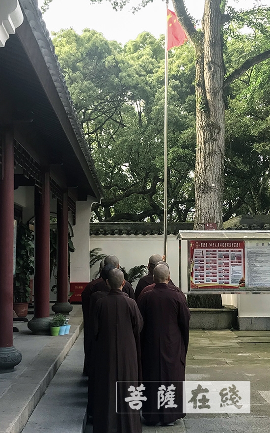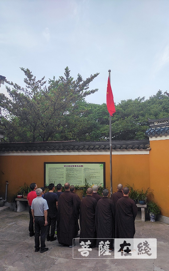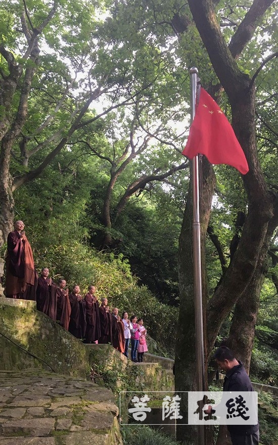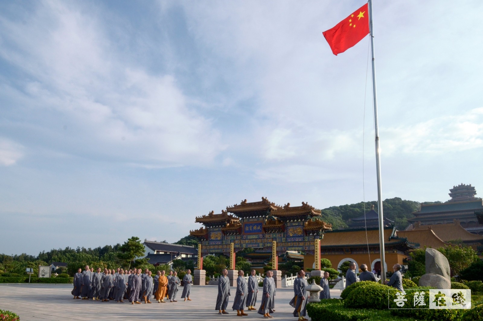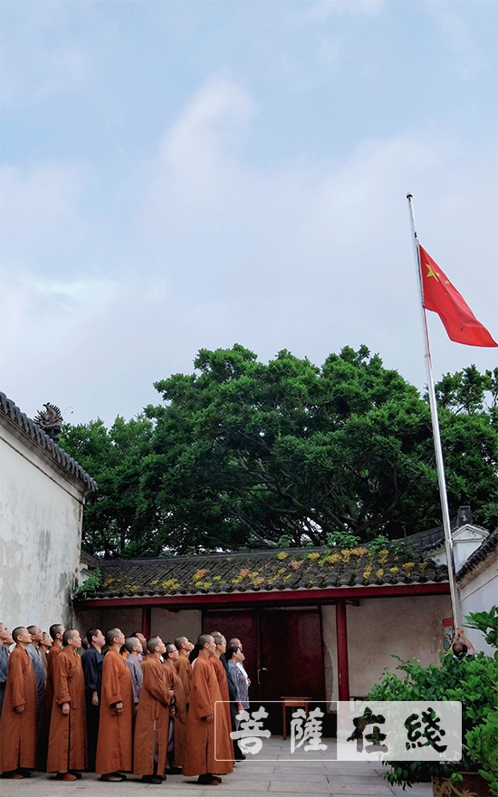 菩萨在线浙江讯 6月2日,为大力弘扬抗疫爱国精神,普陀山佛教协会在此次全省宗教活动场所有序恢复开放首日,组织全山各寺院举行了庄严肃穆的升国旗仪式。