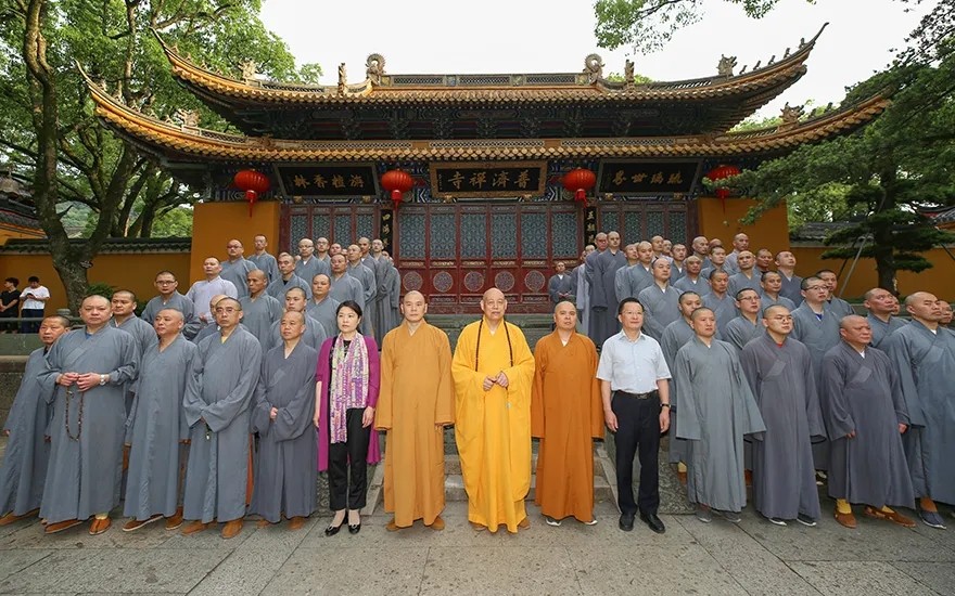 普陀山佛教协会全体法师行注目礼