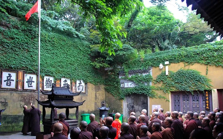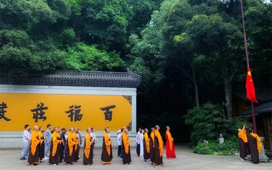 杭州灵隐寺升旗仪式