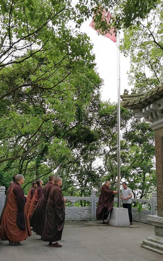 6月2日,为大力弘扬抗疫爱国精神,普陀山佛教协会在此次全省宗教活动场所有序恢复开放首日,组织全山各寺院举行了庄严肃穆的升国旗仪式。