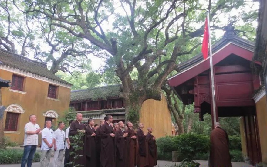 宁波天童禅寺举行升国旗仪式(摄影:崇和法师)