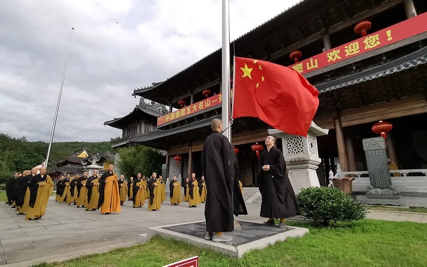 普陀山全山各寺院举行升国旗仪式