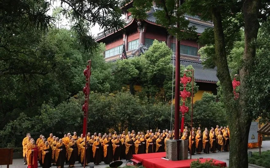 灵隐寺全体僧众行注目礼