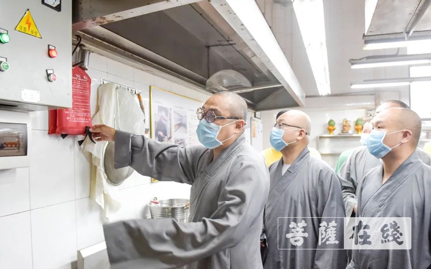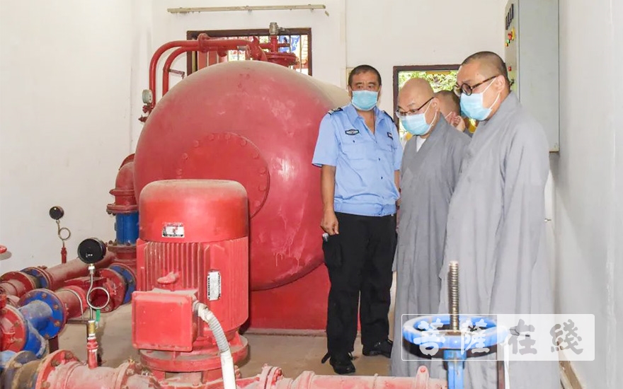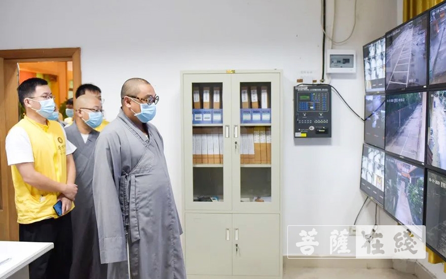 菩萨在线广东讯 6月14日,珠海普陀寺西堂悟伦法师,知客觉悟法师、心恒法师、曙涛法师及相关部门负责人对寺院内部进行全方位安全大检查,多措并举、全力以赴做好开放准备工作。