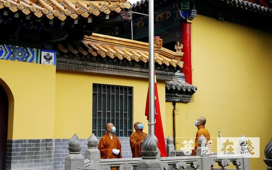 寺院开放首日,兴国禅寺已经将国旗高高升起