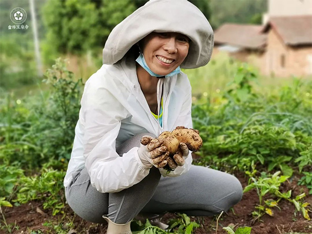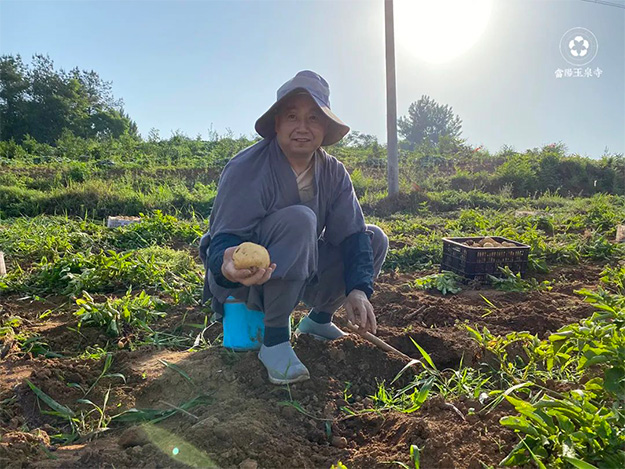 三天时间,大家挖完了所有土豆地,一部分送到寺里,一部分结缘给有缘人,余下的存起来,慢慢吃。