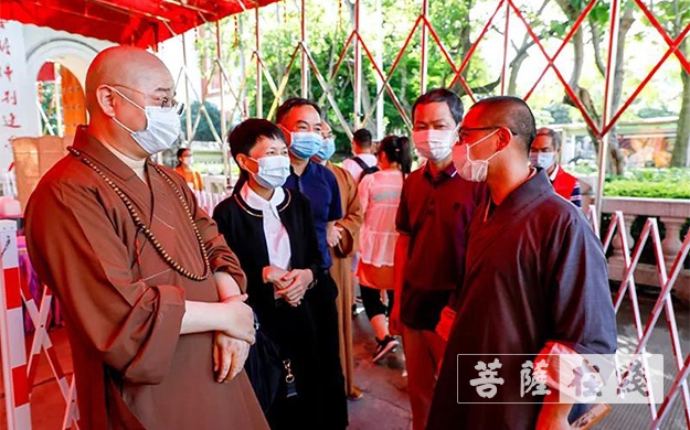 菩萨在线福建讯 6月15日,厦门市民族与宗教事务局局长苏清臻一行在南普陀寺开放首日,针对疫情防控常态化工作进行实地检查指导,南普陀寺方丈则悟大和尚和有关人员陪同。