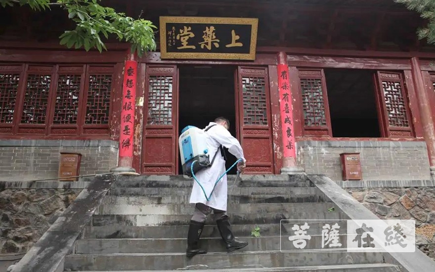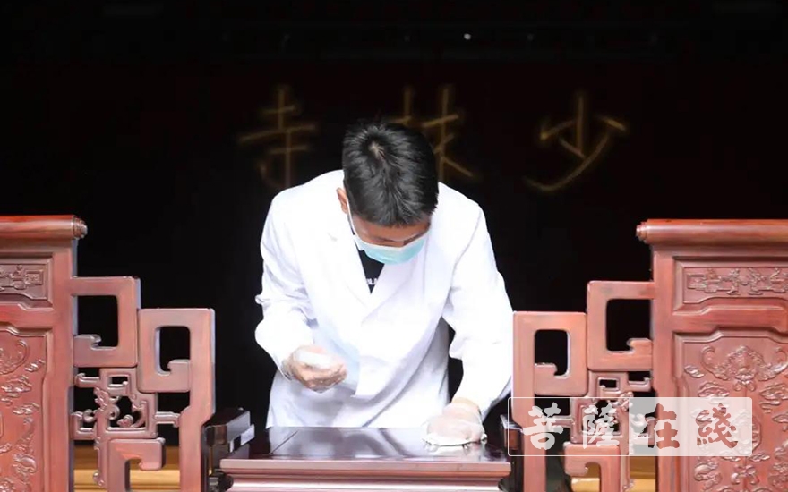 菩萨在线河南讯 6月19日,为加强新型冠状病毒肺炎疫情防控工作,落实国务院应对新型冠状病毒感染肺炎疫情联防联控机制及上级有关通知精神,确保少林寺开放后为游客信众提供安全健康的参观游览、宗教活动环境,少林寺聘请专业人员对少林寺进行全面预防性消毒。