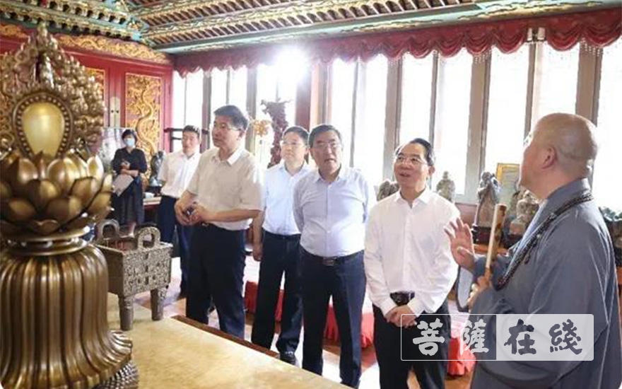 菩萨在线上海讯 6月17日,上海市政协主席董云虎率部分委员赴龙华古寺,就上海市宗教工作情况开展调研。