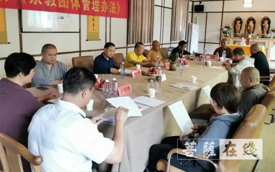 菩萨在线山东讯 6月17日,枣庄市佛教协会常务理事(扩大)会议在薛城区法云寺召开,枣庄市佛教协会领导班子传达了国家、省、市相关文件及指示精神,并带领大家学习贯彻《宗教团体管理办法》及有关事宜。