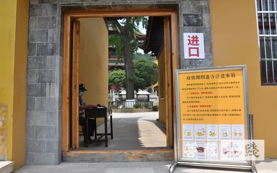 寺院入口处设置防疫宣传板