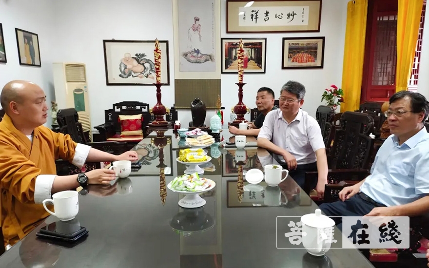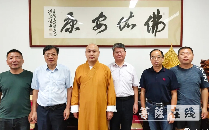 菩萨在线浙江讯 7月16日上午,安徽省天长市水利局局长熊俊龙一行参访绍兴安康寺,得到安康寺方丈法弘法师的热情接待。