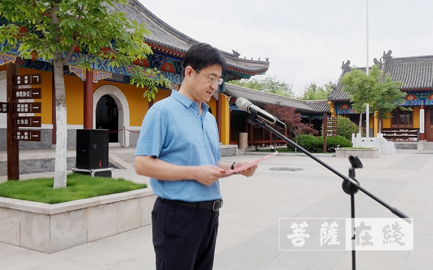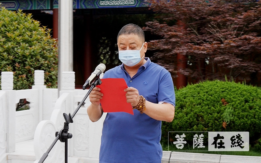 胶州市委统战部副部长、民宗局局长王超出席活动并讲话。一并出席活动的还有,胶州市佛教协会领导班成员、胶州慈云寺僧团全体法师、胶州市佛教居士,此次活动由青岛市佛教协会副会长、胶州市佛教协会会长、胶州慈云寺方丈了善大和尚主持。
