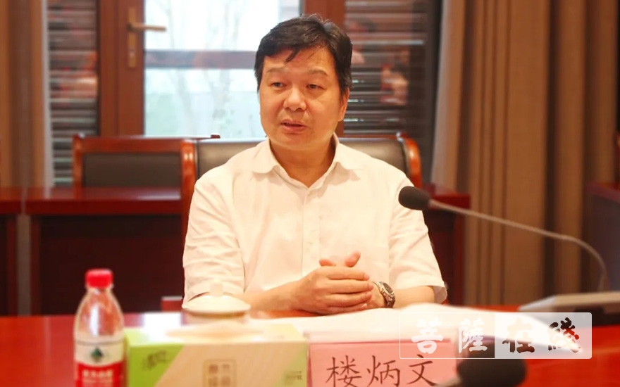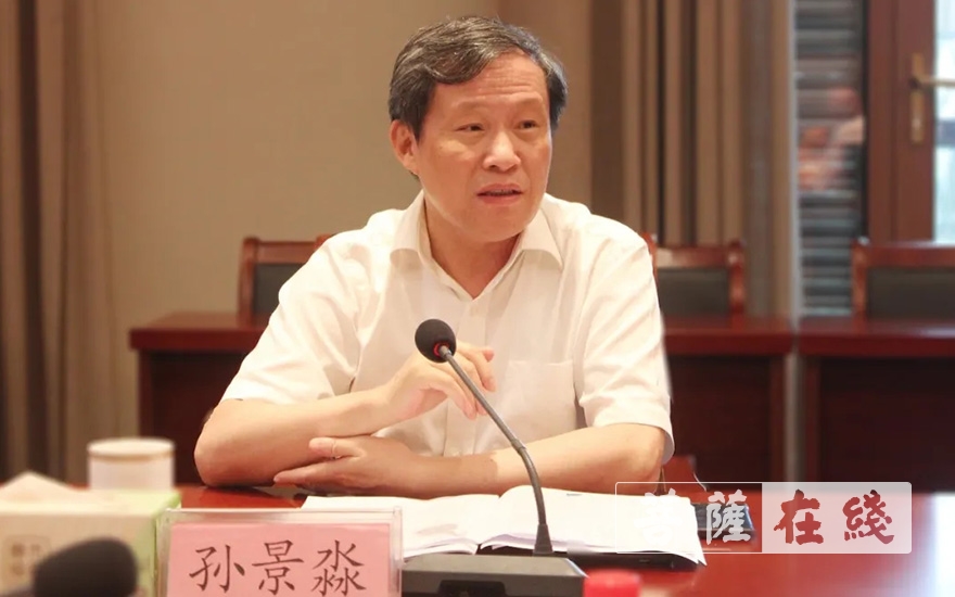 在听取汇报后,孙景淼对项目建设工作给予了充分肯定和高度评价,提出三方面要求:一是建设运行方面,工程建设一定要坚持“优质安全”的原则。在保质量、保安全的前提下抢进度、抢工期,同步跟进运行管理工作;二是文化展示方面,要展示出观音法界在建筑和工艺方面的唯一性。讲好建筑艺术的故事、建设过程中发生的故事、展陈藏品的故事,把佛教文化、佛学内涵与新时代中国精神以及社会主义核心价值观相结合;三是人才培养方面。既要培养和引进各种类型的优秀管理人才和佛学研究人才,又要采用多种方式灵活引才引智。