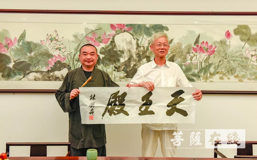 合影留念菩萨在线浙江讯 7月24日,书法家林剑丹先生将耗费数年心血所作篆书《永嘉大师证道歌》原作捐赠中普陀寺收藏。洞头区委常委、统战部戴冕部长见证这一历史时刻。