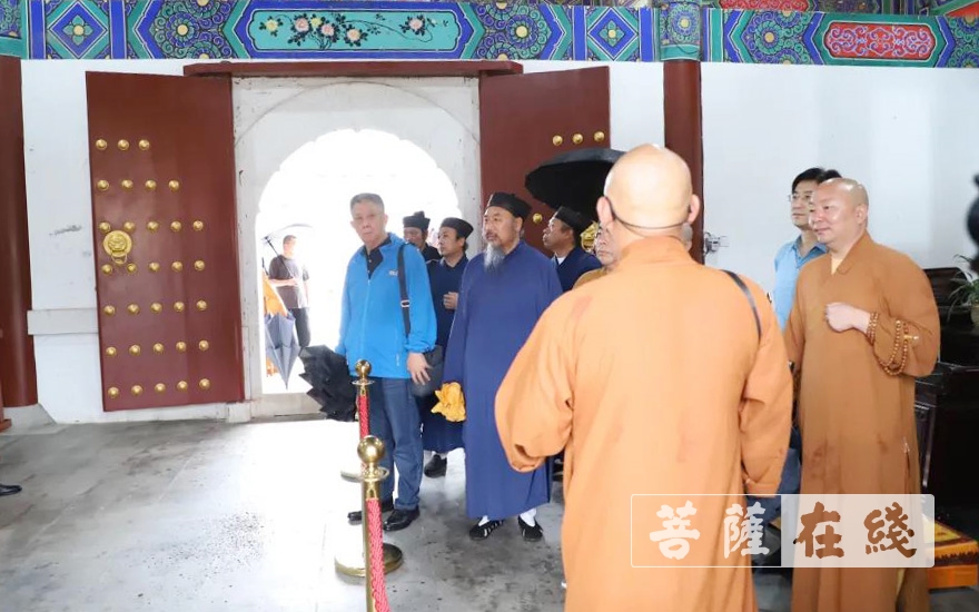 菩萨在线山东讯 7月9日,青岛市佛教协会、道教协会领导班子成员前来观摩胶州慈云寺。这是青岛市宗教界以“互观互学互鉴”带动“自学自践自悟”促进“同心同进同辉”的第二次跨界观摩活动。参观过程中,大家坚持问题导向,聚焦“四进”要求,既看“门面”和“亮点”,也看“后院”和“角落”,帮助查找问题,力戒形式主义。