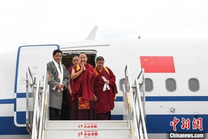 7月31日,班禅一行搭机抵达拉萨,开启2020年在西藏的各项佛事及社会活动。当车队驶入其行宫雪林多吉颇章时,拉萨三大寺、大昭寺、小昭寺等寺院僧人,各族各界信众百余人为班禅举行了欢迎仪式。
