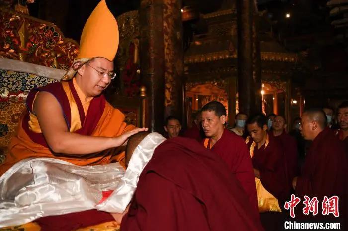 班禅额尔德尼·确吉杰布在大昭寺为僧众摸顶赐福
