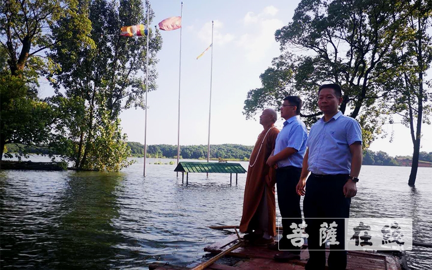 岳阳市湘阴县委常委、统战部部长李庆国一行赴湘阴法华寺调研洪涝受灾情况