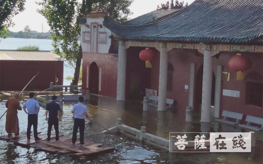 李庆国一行查看法华寺受洪涝灾害被淹情况