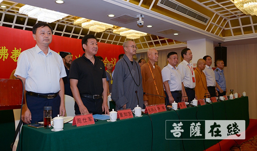 滁州市佛教协会第四次代表会议现场奏响国歌,全体起立