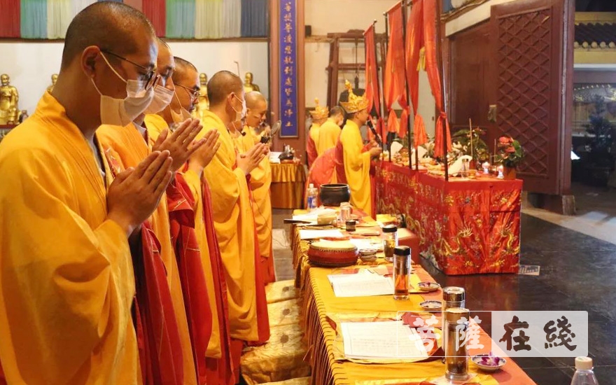 菩萨在线上海讯 8月15日晚至8月16日上午,上海七宝教寺在符合疫情防控要求下圆满举行庚子年大供天拜太岁祈福法会。七宝教寺僧众云集,威仪严整,虔诚奉供,祈愿三宝加被、诸天护持。法会现场如法如仪、法喜充满。