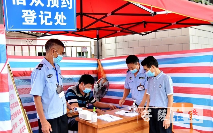 菩萨在线广东讯 8月15日至8月18日,潮州市佛教协会会长达诠大和尚、潮州市佛教协会副会长兼秘书长方锦成带领的检查组,按照上级宗教部门关于做好全省宗教领域常态化疫情防控工作的要求,先后前往湘桥区叩齿古寺、居士林、福寿庵、松林古寺、别峰古寺,饶平县雷音禅寺、观海寺,潮安区龙川古寺、灵和禅寺、福围庵,枫溪区法光寺等潮州各县区已恢复对外开放的活动场所开展常态化疫情防控工作督导检查。