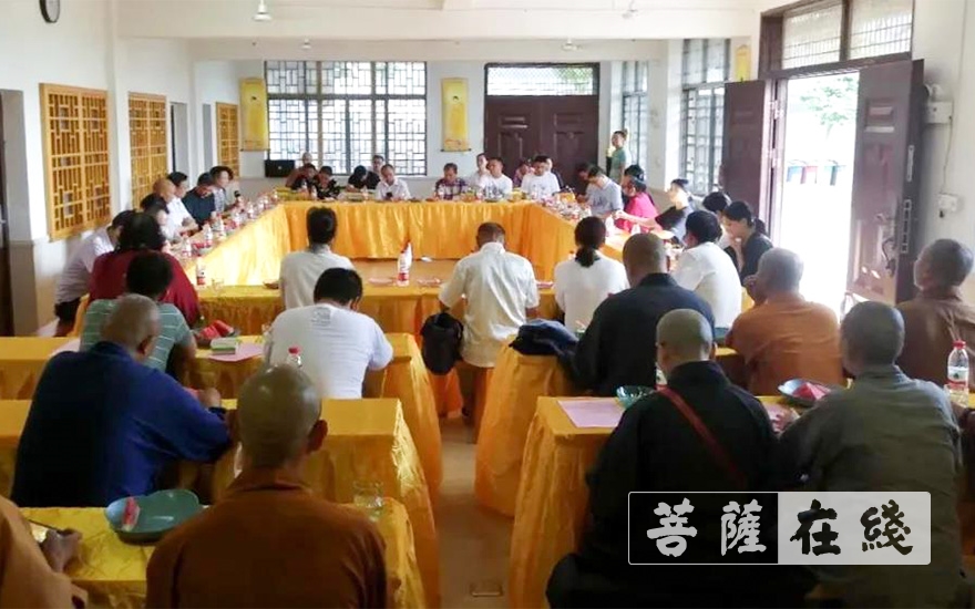 菩萨在线湖南讯 8月5日下午,在永州市统战部领导的带领下,永州市宗教团体班子成员和湖南省部分重点宗教场所负责人一行40余人,前往东安县沉香寺观摩,并进行了座谈。