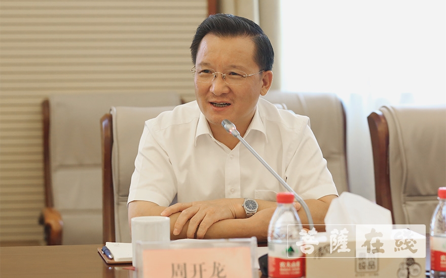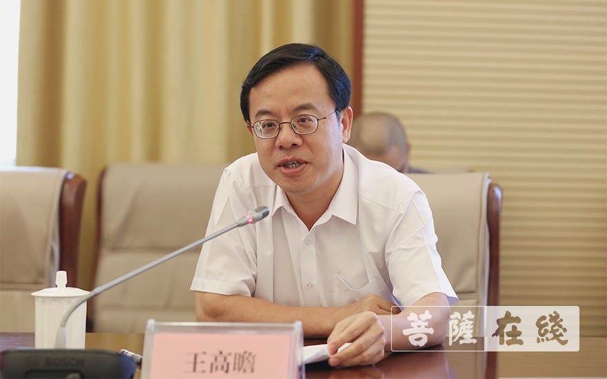 道慈大和尚代表普陀山佛教协会与中国佛学院普陀山学院向前来慰问的王高瞻表示感谢,并向佛学院的各位法师、教师致以节日问候。