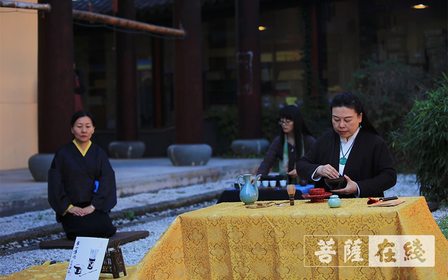无锡开原寺观音文化节特别邀请了东亚茶文化研究会南山流在寺内开设多处“茶禅一味”茶席,以禅花百供接引大众,方便熏修,为广大信众在尘劳中开一间静室,在俗世里圆一个心愿。