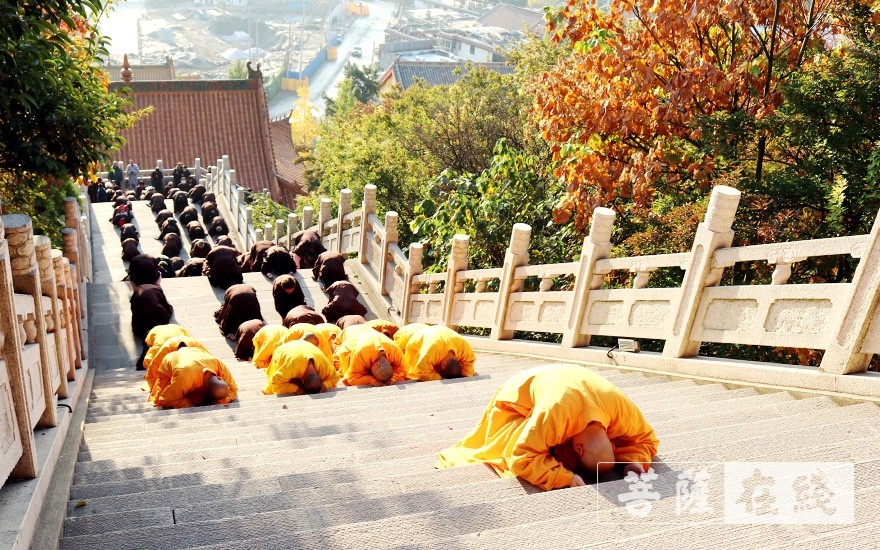 菩萨在线江苏讯 11月4日,农历九月十九,观世音菩萨出家日,为秉承观音菩萨慈悲济世之宏愿,徐州兴化禅寺方丈果光大和尚带领四众弟子朝山拜佛。
