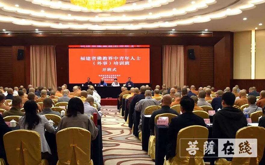 菩萨在线福建讯 11月23日,由福建省民族宗教厅、省佛教协会共同举办的福建省佛教界中青年人士(外事)培训班在福州永泰开班。福建省民族宗教厅二级巡视员萨支农,中国佛教协会副会长、省佛教协会主持工作常务副会长普法法师出席开班式。来自福建省各地佛教团体、寺院、福建佛学院、闽南佛学院的130余位佛教界中青年代表人士参加此次培训。