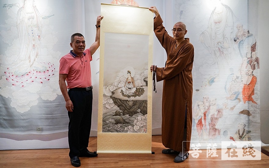 仁悟法师赠送鹏宝轩艺术馆馆长杜国龙观音像