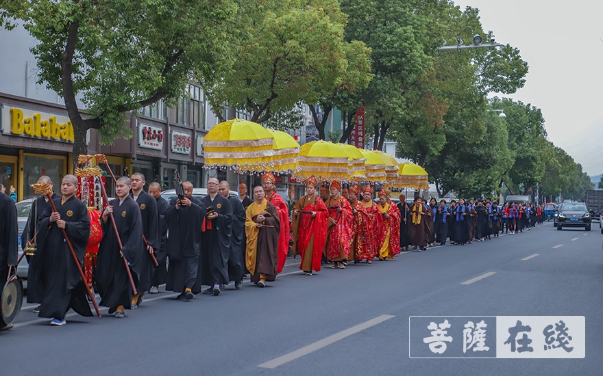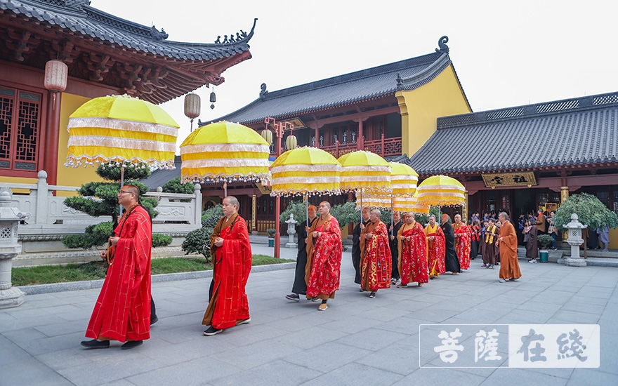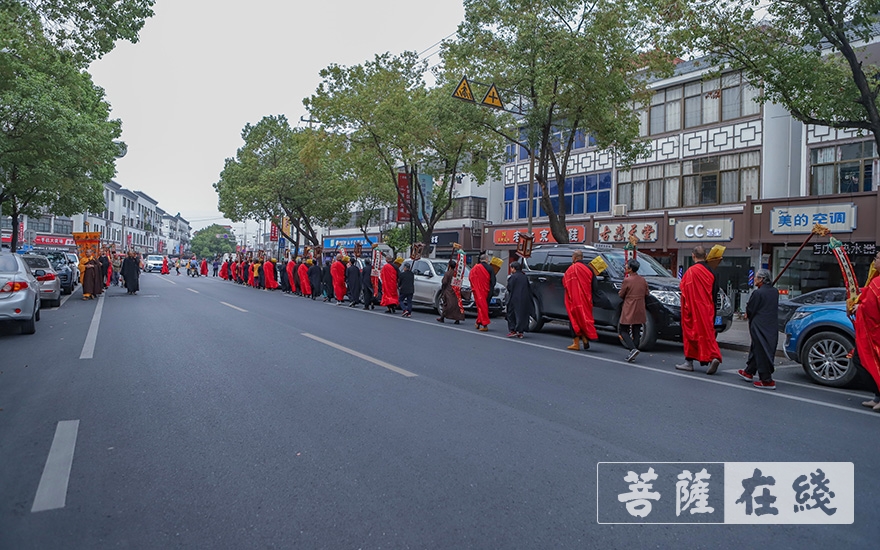 主法法师率领四众弟子绕寺而行(图片来源:菩萨在线 摄影:妙月)