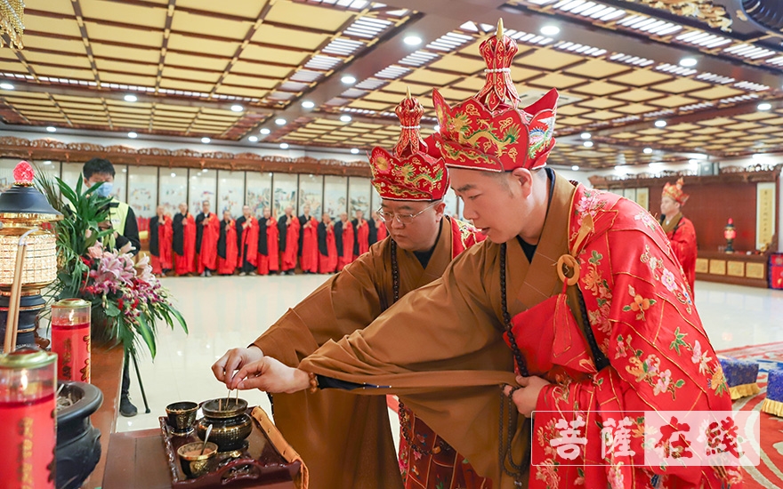智能法师、昌智法师拈香(图片来源:菩萨在线 摄影:妙月)