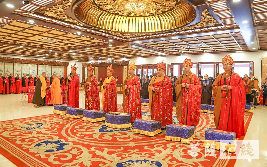 绍兴安康寺方丈法弘法师,上海二严寺方丈智能法师,上海报国寺方丈昌智法师,上海福田净寺方丈明非法师,上海松隐禅寺住持法定法师等7位法师主法送圣仪式。