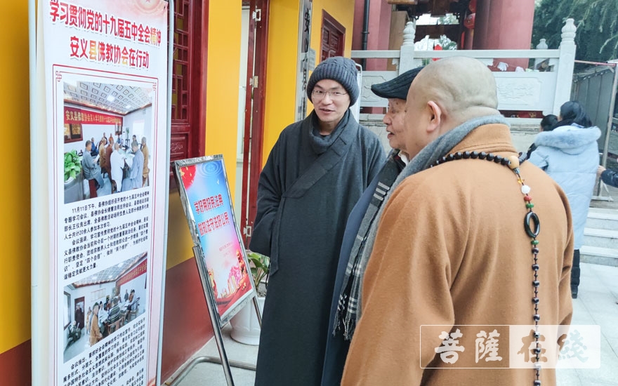 镜慧法师陪同杨曾文及夫人参观安义县佛教协会和接引寺,并详细介绍了安义县佛教协会的工作情况。