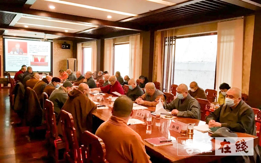 辽宁省社会主义学院教授王淑华宣讲十九届五中全会会议精神。道极法师传达中国佛教协会第十次全国代表会议精神,并宣读12月1日中国佛教协会第十次全国代表大会中央统战部副部长、国家宗教事务局局长王作安的讲话内容。