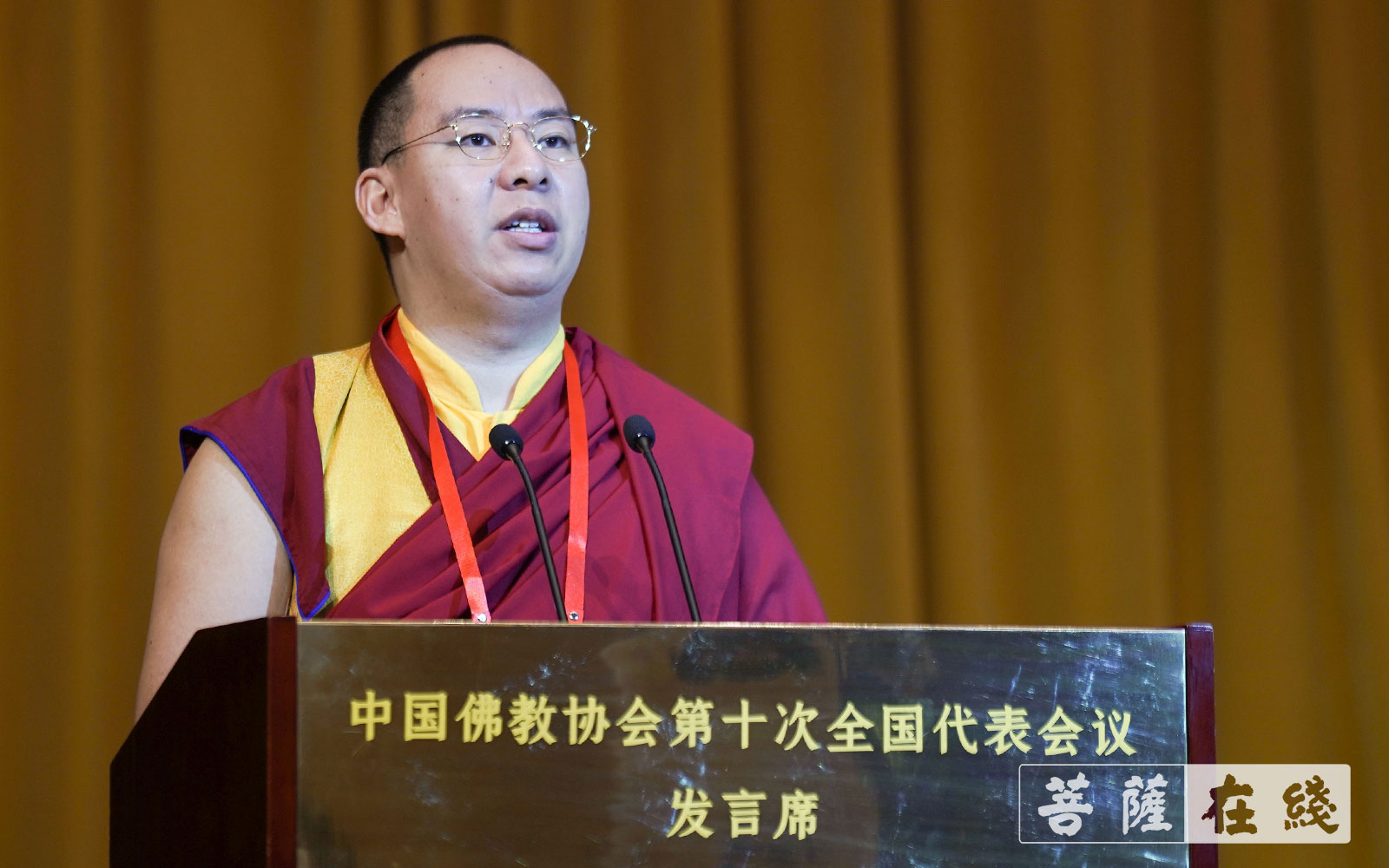 中国佛教协会副会长班禅额尔德尼·确吉杰布作大会发言