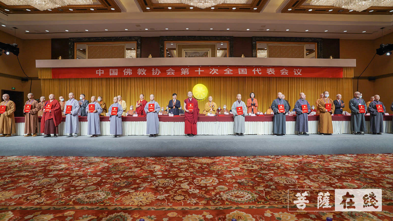 会议选举产生了中国佛教协会第十届理事会、常务理事会。选举演觉为中国佛教协会会长,嘉木样·洛桑久美·图丹却吉尼玛、帕松列龙庄勐、班禅额尔德尼·确吉杰布、圣辉、道慈、珠康·土登克珠、策墨林·单增赤列、香根·巴登多吉、永寿、永信、明生、觉醒、如瑞、湛如、妙江、心澄、纯一、正慈、印顺、增勤、宗性、赵九九、普法、静波、胡雪峰、明海、东宝•仲巴呼图克图、祜巴等傣、则悟、常藏、赛赤·确吉洛智嘉措、扎西坚才、怡藏等33人为中国佛教协会副会长,刘威为秘书长。推选帕巴拉·格列朗杰、传印为中国佛教协会名誉会长。会议还推举了咨议委员会主席、副主席。