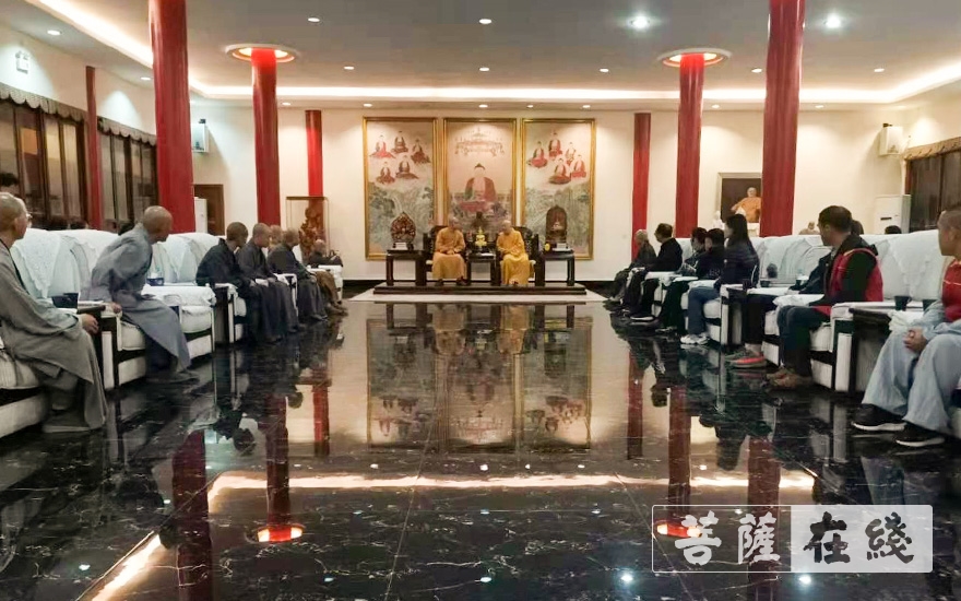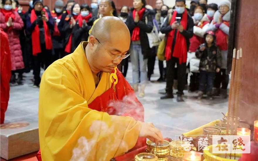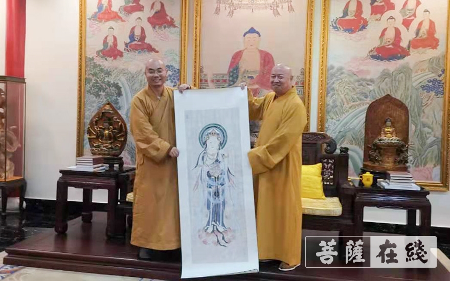 菩萨在线甘肃讯 12月13日,敦煌佛教界携领全体僧众举行恭迎中国佛教协会名誉会长本焕长老舍利永久供奉法会。