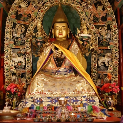 今天2020年12月10日,藏历十月二十五日,是藏传佛教格鲁派创始人宗喀巴大师的圆寂纪念日,格鲁派寺院为纪念大师把这一天定为燃灯节。宗喀巴大师一生显密圆融、行愿无尽,世所尊崇。所创立之格鲁派,历经600余年,高僧辈出,至今仍宗风严谨,声名远播。现今见到清净的袈裟覆盖藏区,庄严的黄帽遍布世界,都是宗喀巴大师的功德! 值此殊胜功德日,请大家多行持善法,做诸功德。祈愿世界和平,国泰民安!祈愿上师和高僧大德法体安康,法轮常转,正法久住,众生安乐!祈愿佛子业障消除,精进修行,消除障碍,增福增慧,早证菩提! 在西藏的几十年中,宗喀巴大师勤奋努力,广参高僧,释疑解惑,克服各种艰难险阻,终于在53岁的时候,西藏的大昭寺举办盛大的传昭大法会,明确提出了革新藏传佛教的观点,并且得以实践,创立了一个新的藏传佛教派别——格鲁派。 宗喀巴大师戒律严明、博学多闻、智慧通达、辩才无碍,世人尊他为第二佛陀,并视大师是大智文殊师利菩萨的无二化身。宗喀巴大师,法名罗桑扎巴意为善慧称吉祥,也有称大师为杰喇嘛、杰仁波切,意为如珍宝一样的上师。 宗喀巴大师一生的著作浩繁,三部著作至今是藏传佛教高僧大德必读的经典《菩提道次第广论》《密宗道次第广论》和《格言精要》。这三部著作已经翻译成为各种文字,在世界各地广泛流传。 宗喀巴大师对佛学融会贯通,一生为雪域高原人民的安康为己任。创立了藏传佛教中的最高学位——甘丹赤巴。这种唯学识为上的高贵佛教品质,不断的鼓励年轻一代的僧人们勤奋学习,不断追随大师的身影,在藏传佛教中取得了一个又一个新的辉煌。也为藏传佛教的发扬起到了不可估量的作用。 公元1419年,藏历十月二十五日 宗喀巴大师圆寂 痛失导师的人们开始在每一年的 藏历十月二十五日都供灯纪念 燃灯节就是宗喀巴大师的纪念日 这一天没有过多的欢庆 更多的是思念与缅怀 人们燃起无数盏酥油灯 许愿佛法长明不灭 宗大师的圣教不衰 让象征着智慧的光明 照破愚痴黑暗