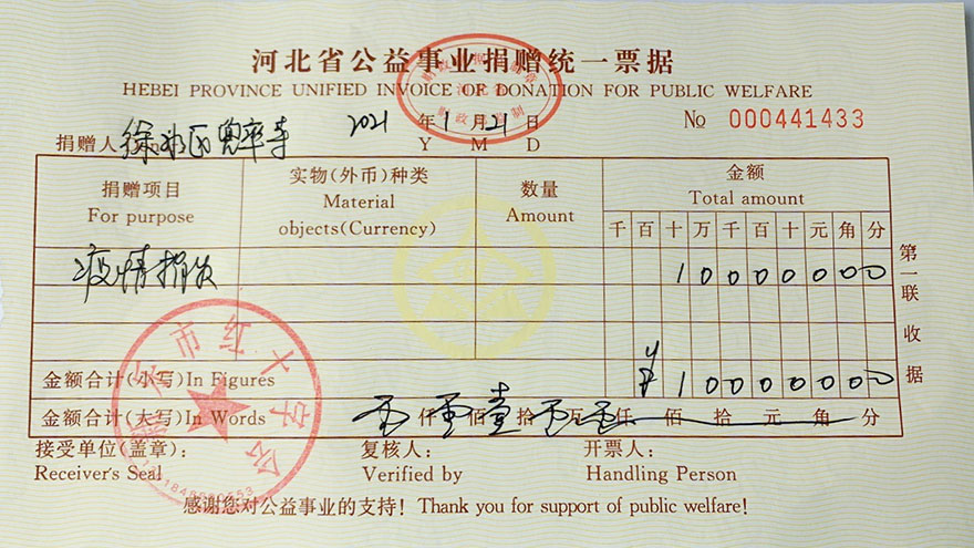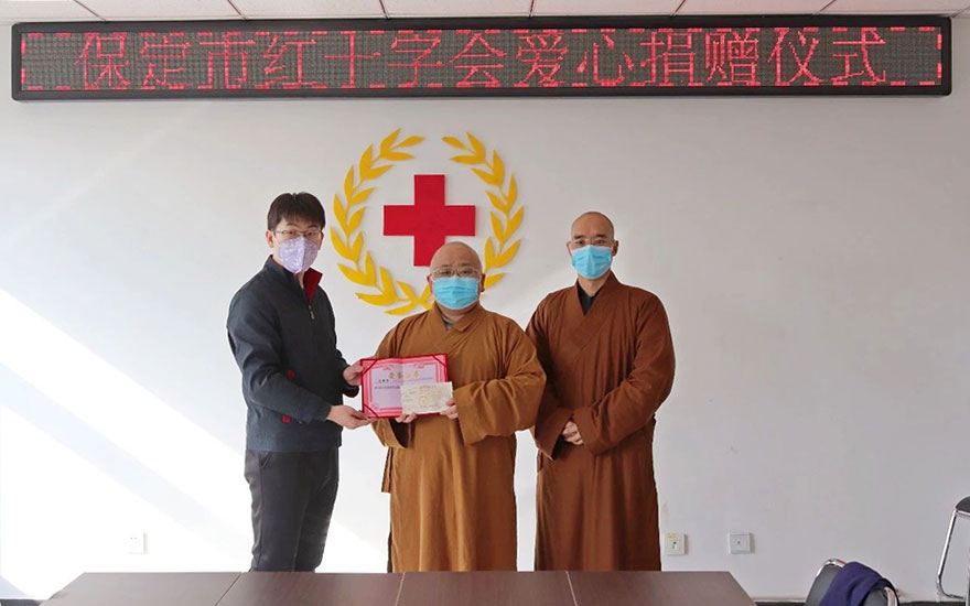 2020年1月,保定兜率寺委托市红十字会向武汉转交抗疫捐款